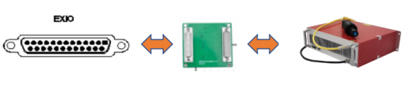 为了扩展控制其他类型欧陆娱乐器,408SCAN控制器本体上增设有一个扩展接口,以扩展fiber欧陆娱乐器为例,通过扩展接口进行连接扩展板,转换TTL信号后进行对应控制欧陆娱乐器的欧陆娱乐使能、红光开关以及8位数字量控制能量,使用指令配置EXIO接口,配置连接扩展板。