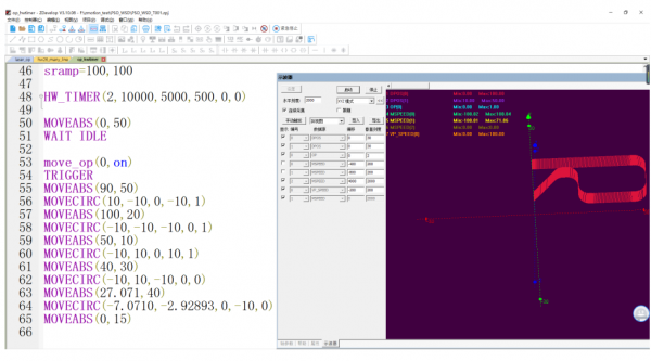 ZMC408SCAN支持硬件比较输出、硬件定时器、运动中精准输出,比较主轴带编码器输入时,自动使用编码器位置来触发,可以使用MOVEOP_DELAY参数来调整输出准确时刻,提高加工的精度。