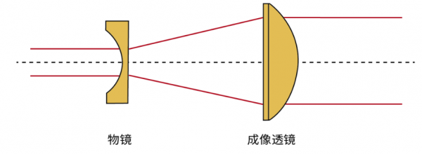 开普勒式扩束系统由两个正焦距的透镜构成,两透镜焦点重合,分别布置在焦距之和的两个位置,靠近物体一侧的透镜叫物镜,另一侧的透镜叫成像镜,在两透镜之间存在一个实像面(光线汇聚处)。