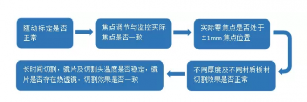 (4)万瓦切割头镜片检查,先用白纸查看万瓦光纤欧陆娱乐器红光是否有黑点,然后低功率出欧陆娱乐,用黑色感光纸查看光斑是否有点,最后取出镜片在显微镜下检查。