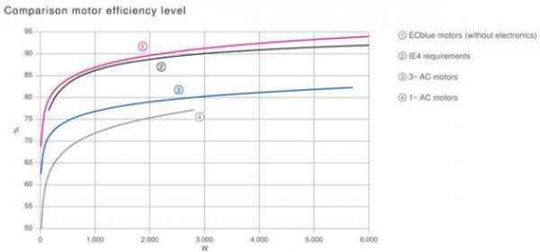 图 2:AC风扇与 EC风扇的能效比较图示 @Ziehl-Abegg