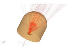 步骤一) 首先, 从FRED光源库中选取一颗LED作为光源。 步骤二) 导入由CAD软件设计的指针文件,并将指针和盖子的材料特性赋予成PMMA 。 步骤三 追迹由LED发出的10000条光线 光从指示器出射的外观...