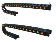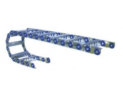 TLG型钢制拖链系列: TLG 型钢制拖链可承载数量多,重量大的电缆及油管,自由悬置 ( 允许不用支撑轮 ) 长度大 , 支撑板可依顾客需要制作 , 适用于工作母机 , 移动机械等 . 其弯曲半径为 100 -...