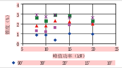 图9 锥度%与峰值功率 (JK300D)