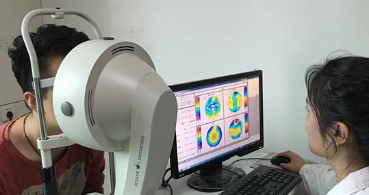 得知葛阿姨的困扰后,魏芬帮其做了pentacam角膜地形图检测,不仅能检测其角膜厚度,还能预测手术后视力恢复效果。“检测后,我告诉她术后预测可恢复视力达0.6,她表示只要不戴眼镜就很满意了。”