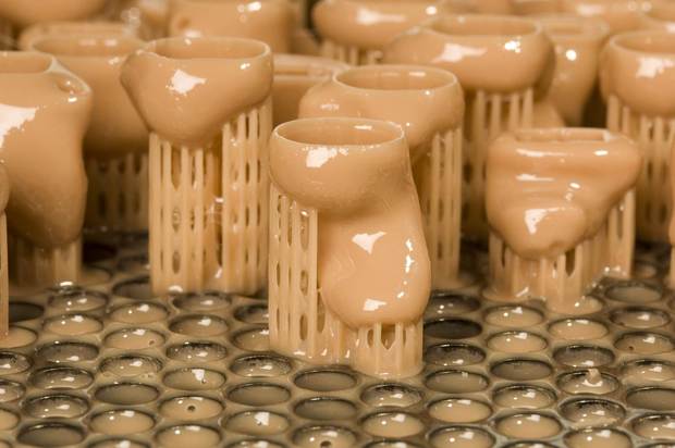 如今许多助听器都是用光固化3D打印制造的,比如图片中的这些,来自丹麦公司 Widex。