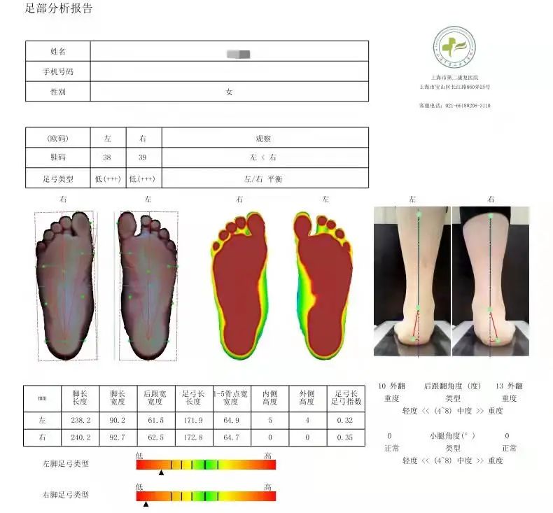 足弓塌陷(足弓指数 左:0.32,右0.35)