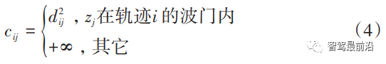 随后使用马氏距离作为马氏波门的阈值 γm,对满足欧式波门的检测结果再进行马氏距离的计算,滤除符合欧式波门但不符合马氏波门的检测。
