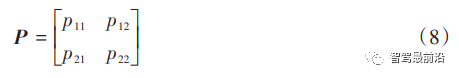 定义模型间转移概率矩阵为P,其中元素pij为从第i个运动模型转移到第j个模型的概率。