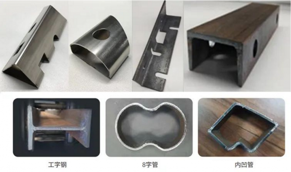 支持多种管材切割 标准管材:方管、圆管、椭圆管、腰型管、角钢、槽钢; 异型管:8字管、D型管、半圆、多边形、H钢、T字钢等。