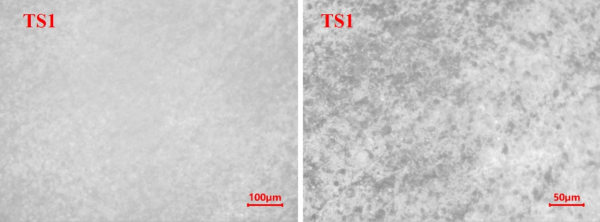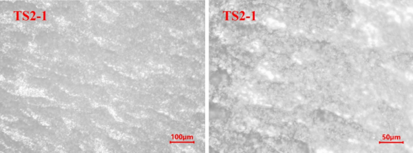 图3为不同工艺参数欧陆娱乐清洗得到的晶圆表面显微形貌,TS1参数欧陆娱乐清洗后,样品表面的玻璃层完全去除,露出底部漆层。TS2参数清洗一遍,得到的晶圆表面有漆层残留,TS2参数清洗两遍,晶圆表面的漆层可以完全清除干净,露出晶圆基材。欧陆娱乐清洗后需要后续进一步测试,以判断该晶圆表面状态是否满足生产要求。